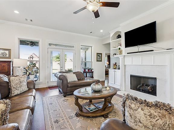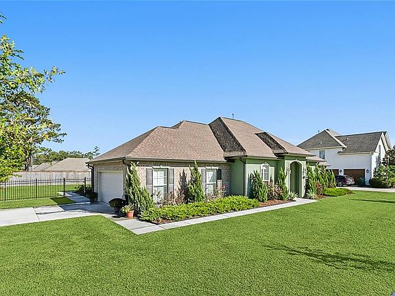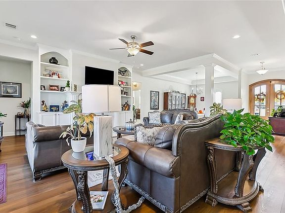 This custom built beauty has left no detail untouched! Great open floor plan. Kitchen is a chef’s delight with a large island, gas cooktop, double oven and a huge separate pantry (a room in itself). Separate dining room. Breakfast area and den overlooks the oversized extended patios. Primary suite features a custom tile glassed shower, dual vanities and a very large closet and bedroom boasts tray ceilings. Large utility room. This home sits on a corner lot which is off a dead end street. Enjoy this beautiful back yard, great for entertaining or just relaxing. Playset and fountain remain. Great location! Flood Zone X.