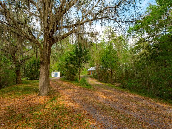 Private road leads to well-designed & constructed 2495sf custom brick home. Nestled in wooded area, the home boasts blueberry bushes, Satsuma tree & raised garden beds. Low energy bills! Brand new (3/2020) dual HVAC's. Double-hung, insulated windows provide cross breeze. 4/2, all bedrooms downstairs (4th bedroom used as office). Upstairs bonus room & office. High-speed business internet. Wide ADA accessible hall & doorways. Metal roof. New deep-well pump (4/2019) w/ aerator & water softener. Irrigation system for lawn & garden. Dual ovens & cooking island in kitchen. Very low maintenance, gravity-fed septic system. Hurricane shutters. Portable generator. Transferable termite bond (Naders). Home has been lovingly maintained by original owners. Sellers offering hm warranty up to $500.
