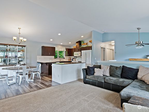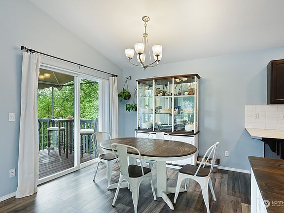 Beautifully updated 3 BR, 2 3/4 bath home with lg family room (possible 4th bedroom or Multi gen space!). Full bath on lower level with laundry. The bright and open upper living space makes the home feel larger that 1721 sq ft. Kitchen w/large island and newer LVP flooring. Newer carpet through out the living room, bedrooms and family room. All Bathrooms updated with LVP flooring , back splash and new toilets. There are lovely designer touches through out the home! The deck off the dining room has a retractable awning for yr round enjoyment. Located in cul-de-sac ,fenced yard w/sliding gate,shed, shelter, firepit and private backyard & green belt. Ht water heater and roof are 2 years old.220V in garage.$7,000 towards CC or rate buy down!