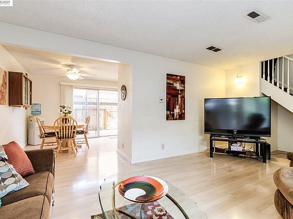 Bright home featuring an open kitchen, breakfast nook and family room downstairs. Patio off the kitchen is great for outdoor entertaining. Nice light colored laminate wood floors downstairs. Newer carpet upstairs. Close to shopping, dining, parks, BART, fwy access, & great schools! Open Sun 6/5 1-4