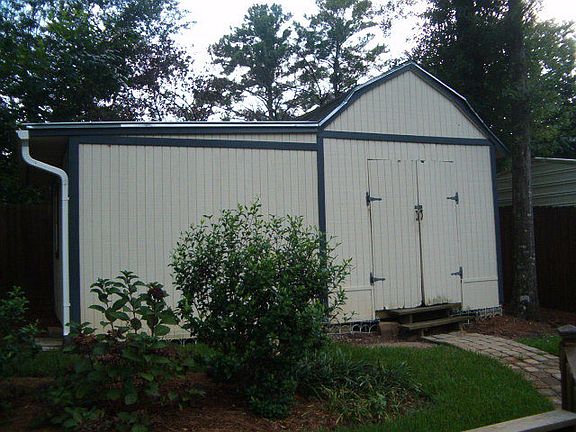 Great buy on this well landscaped and maintained home. Kitchen has granite counters, ceramic tile floor & back splash with lots of cabinet space. Home features hardwoods and carpeting, built in bookcases, rock trimmed fireplace and plantation shutters throughout. Step outside to enjoy a well landscaped fenced back yard with patio and large wooden storage building.