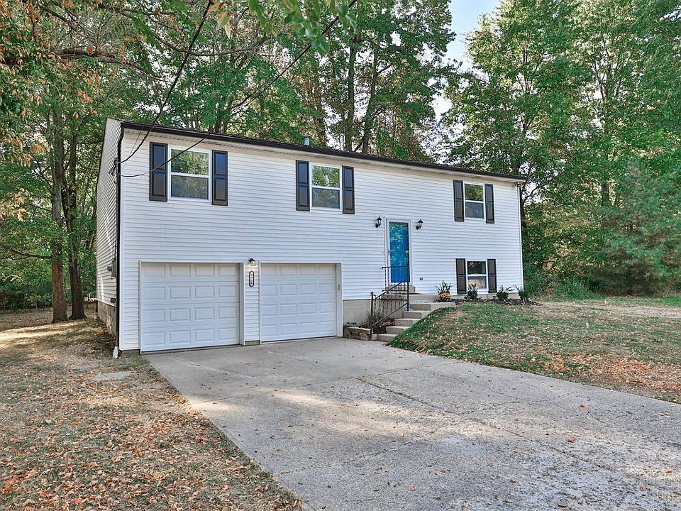 Don't miss out on the opportunity to own this newly remodeled house. NOT in a subdivision and NO restrictions! All new interior! Beautiful white kitchen cabinets with new stainless steel appliances. New luxury vinyl flooring and carpet throughout. Stylish bathrooms. Wooded lot. New windows! Lower level has recreation room and is plumbed for 1/2 bath. HWH 10 yrs. Roof 15 yrs. HVAC recently serviced. Conveniently located to interstate, shopping, and restaurants.