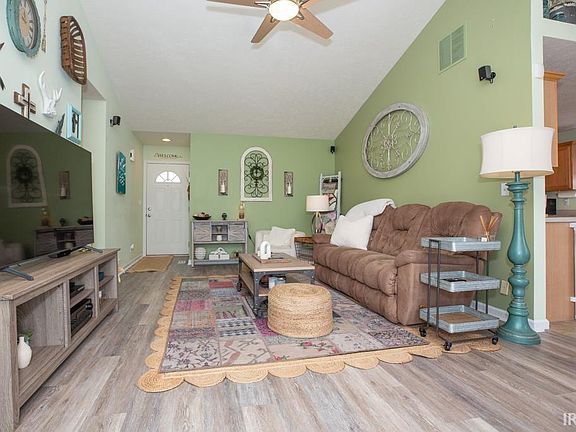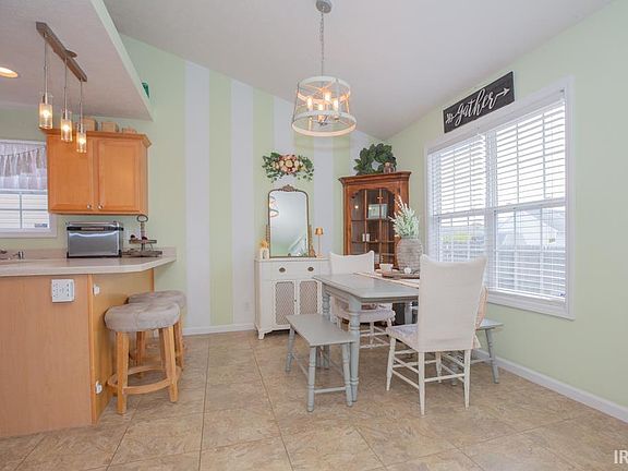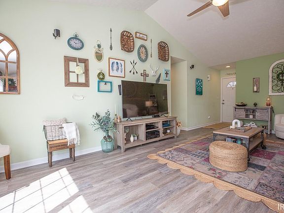 This charming 3 bedroom/2 bath ranch located on Evansville's Northside perfectly blends style and functionality! The curb appeal of this home sets the stage for what’s to come inside! A covered front porch welcomes you into the large great room with vaulted ceilings and luxury vinyl plank flooring. The great room opens to the dining area that is large enough for a table and hutch. The kitchen offers vinyl tile flooring, stainless steel appliances, and a breakfast bar for additional seating. The pantry is an unexpected bonus for additional storage! Opposite the pantry is a stacked washer and dryer which are included in the sale. A pocket door separates this area from the kitchen. On the other side of the home are 3 bedrooms and 2 full baths. The owners’ suite features a spacious bedroom with beadboard accents, a walk-in closet, and an ensuite bath with a stand-up shower. Two additional bedrooms (one is being used as an office) are located down the hall. Both are nicely sized with a full bath located nearby. The backyard is perfect for the upcoming fall season with an incredible two-tiered deck offering nearly 450 sq ft of space, a full privacy fence, raised garden beds, and a storage shed. The 2.5 car attached garage is spacious offering wooden shelving, a handy electric heater, and a service door. Additional amenities include: 1 year old roof, updated lighting, including soffit lights, Ring security cameras, surround sound speakers, and beautiful landscaping. Move-In Ready, Immaculate Condition, and Convenient Location – This home has it all!