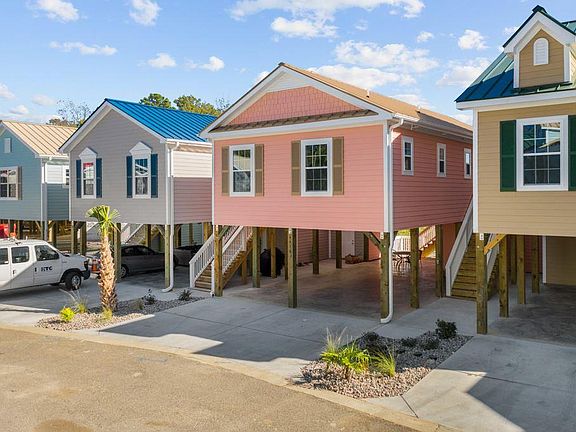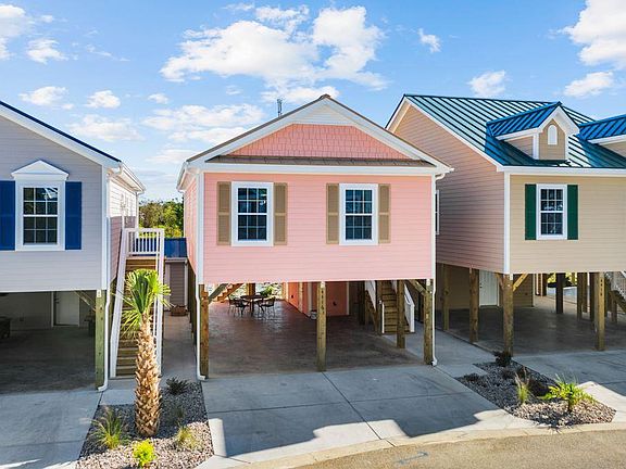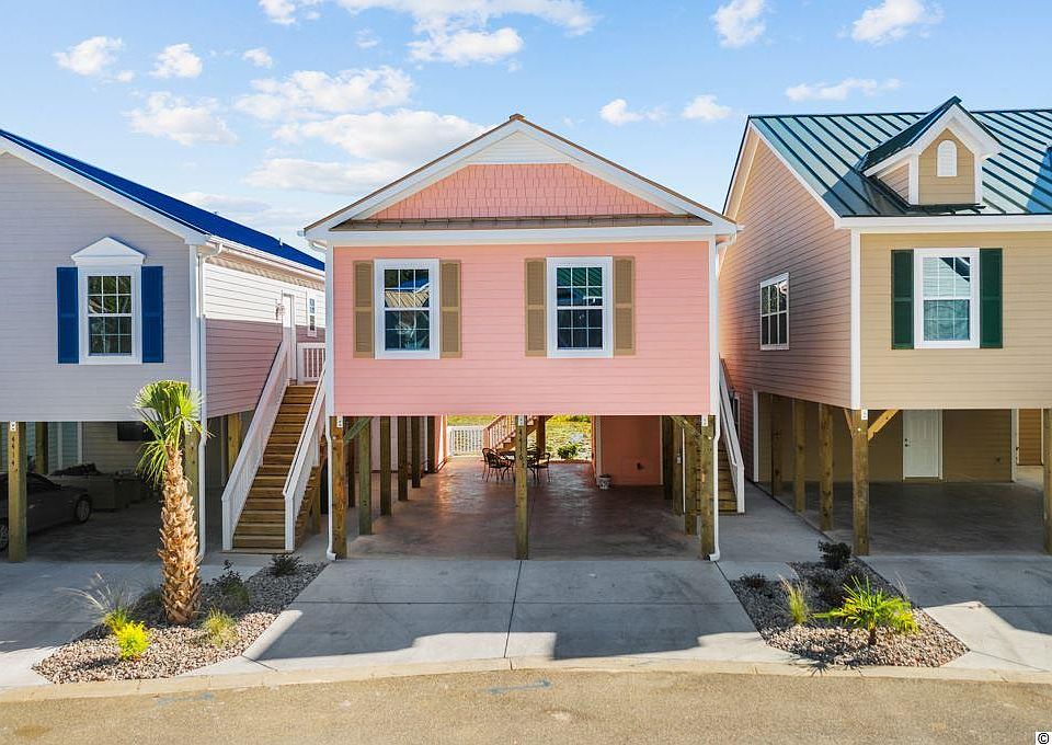 Welcome to Grande Harbour, a quaint community of cottages and raised beach homes annexed into the City of North Myrtle Beach. This home features upgraded cabinetry with soft close drawers/doors, granite counter tops, stainless steel appliances and luxury vinyl plank flooring throughout the entire home. The open floor plan and vaulted ceilings provide a spacious feel throughout the main living area and kitchen which overlooks the natural pond behind the home. Below, you will find two large storage rooms and ample parking. The space underneath the home provides the perfect spot for outdoor living with beautiful views. Grande Harbour is a natural gas community with its own dry stack marina and offers discounted marina services to homeowners! Standard exterior features include hardie plank siding, metal roof, tankless hot water heater, and attached storage rooms. Don't forget, the landscaping, yard maintenance, irrigation, pool, covered picnic area with gas grill, even basic cable, internet, telephone, and security system with basic monitoring is all included in your HOA dues! Just seconds from the Intracoastal Waterway and minutes from Cherry Grove Beach.