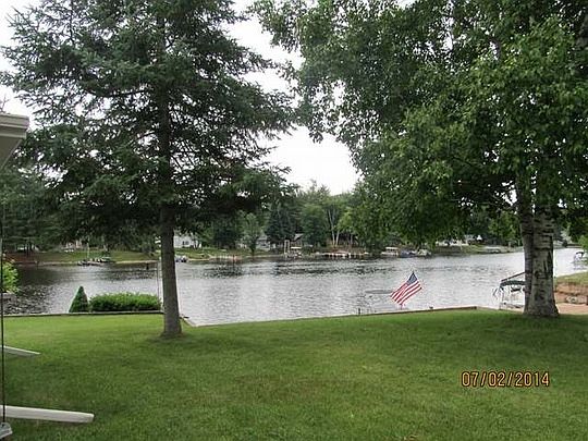 Nice well cared for 2 bedroom home or cottage with large trex deck on water side with a fantastic view. Trex decking down to water and dock too. Nice sandy area by the water and sandy swimming for the family. New double pane windows in the sun room and double pane windows in the house. Front part of garage is 20x24 and addition of pole barn is 24x40. Lots of storage for all the toys. Sprinkler system for watering the grass too. Start enjoying the summer here now.