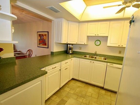 REAP THE BENEFITS OF THIS BEAUTIFUL REMODEL! Light, bright, split plan villa w/attached carport & storage, extended Florida room & private patio with lake view. Can be offered turnkey furnished. Kitchen features; gorgeous tile flooring; raised panel cabinetry w/slide-out shelves, 3 Lazy-Susans, lots of drawers, under cabinet lighting; brushed pewter hardware; faux granite counters; deep bowl stainless sink; updated appliances & pantry. Master boasts lots of natural light; full glass door to Florida room; walk-in closet w/attic access. Master bath features; bead-board vanity & wall cabinetry; solid surface top; integral sink; coordinating floor & shower tiling; low profile toilet; antique bronze mirror, lighting, faucets & hardware. 2nd bedroom w/adjacent bath features: coordinating floor & walk-in shower tiling (built-in shelf & seat); raised panel vanity & wall cabinetry; solid surface top; integral sink; coordinating faucets & hardware; low profile toilet. You'll appreciate the NO CARPET interior! The air conditioned Florida room & private patio are welcome retreats. For fun take a walk on the path just steps from the villa to the clubhouse or bay. BOAT DOCK included for qualified buyer. Easy access to Sarasota Bay & Gulf of Mexico. Mt Vernon has it all! Kayak launch, RV, boat & kayak storage, boat docks, heated pool, spa, sauna, tennis, chip & putt, clubhouse, banquet room, library, card room, woodshop, fitness room & MORE! Minutes to island's sugar white sandy beaches, fabulous dining & unique shops.