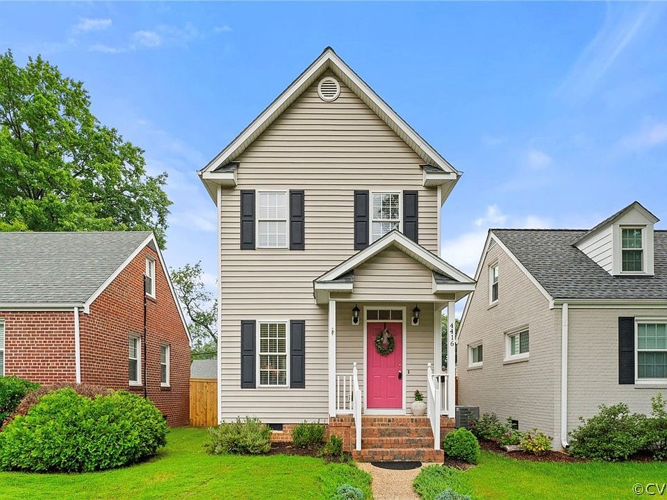 Welcome to 4416 Patterson Avenue! This beautiful home features 2 spacious bedrooms, 2.5 bathrooms, hardwood and stone floors throughout the main level, plush carpeting and padding in the bedrooms, stainless-steel kitchen appliances, and a beautifully remodeled kitchen. The open living room creates an inviting atmosphere to entertain, and the modern kitchen offers quartz countertops with marble backsplash, a gas range, a built-in wine bar with wine cooler, and ample pantry space. Additional amenities include an updated half-bath and vanity on the main level, a recently replaced roof (est. 2021), a new HVAC unit (est. 2023), a gas fireplace in the living room, and full bathrooms connected to each bedroom. The backyard includes a freshly painted deck, a brick patio, and a detached shed for all of your entertaining needs. This home is located in the highly sought-after Colonial Place subdivision and is conveniently located near dining, shopping, and the main thoroughfares to I-64 and I-95.