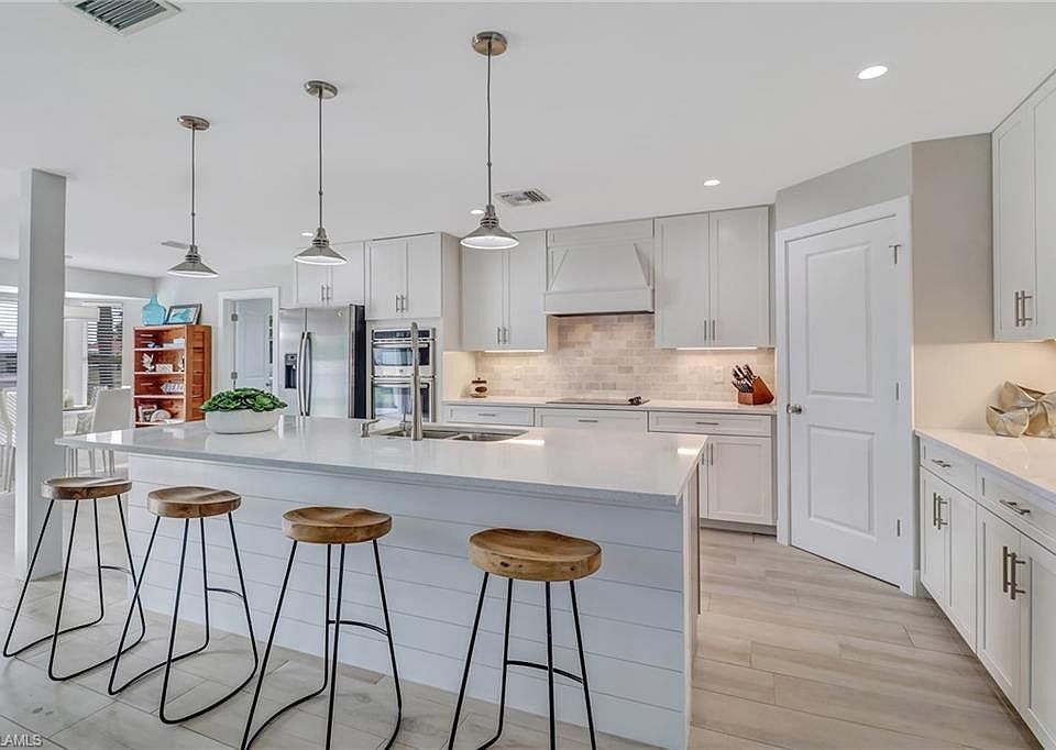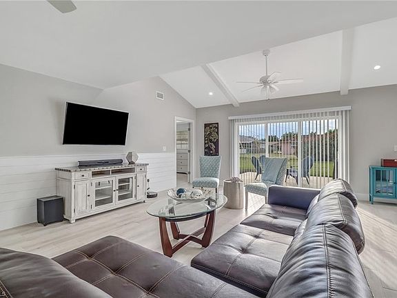 Nothing like this in Cape Coral!! This completely renovated coastal contemporary home is ideally located 5 minutes to the best spots in newly updated downtown Cape Coral. Featuring a wide open floorplan with all new finishes including gorgeous wide plank tile floors throughout, slow-close solid shaker cabinetry with double wall over and cooktop, upgraded appliances, completely renovated bathrooms and exterior paint and landscaping facelift. New LED Lighting, interior doors, custom carpentry, shiplap, beams and more. Brand new AC installed 1 month ago. HUGE fenced yard for your kids and/or pups and plenty of room for a pool without losing yard space. ALL ASSESSMENTS PAID.
