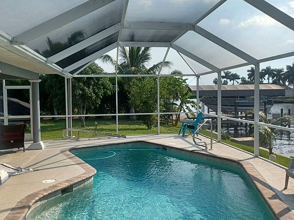 Introducing a stunning waterfront pool home, soon to be available in the desirable location of SW Cape Coral, FL. This property boasts four spacious bedrooms and 3.5 well-appointed bathrooms, offering ample space for comfort and relaxation. The home is situated on a generous triple lot, providing plenty of room for outdoor activities. The private pool is a standout feature, perfect for cooling off on those warm Florida days, or an evening swim while watching a gorgeous sunset. Inside, you'll find beautiful tile floors and a fresh coat of paint, enhancing the home's modern appeal. The property also includes a washer and dryer for your convenience. But the true gem of this home is its dock with lift, a dream for any boating enthusiast. Don't miss out on this exceptional opportunity to enjoy waterfront living at its finest.