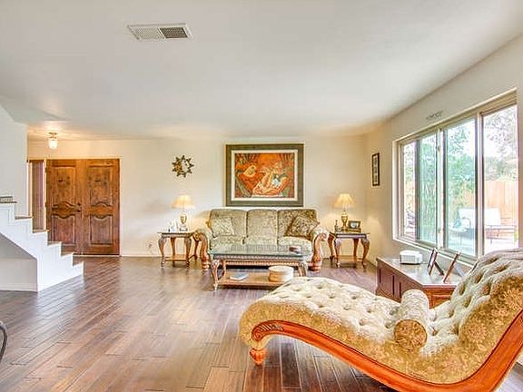 This outstanding home in the heart of Carlsbad is light and bright and move-in ready. Spacious living room offers rich newly laid high end laminate flooring, and opens to the nook/kitchen, which provides direct access to the private backyard. The kitchen has been beautifully updated and features new painted cabinets, chrome hardware and stainless steel appliances. A den with double-doors off the entry boasts a cozy wood-burning fireplace, and makes a great office, library, play room or 4th bedroom. Upstairs, the master suite offers three closets and an attached private bathroom. Linen storage, two secondary bedrooms with generous closets, and a full bathroom complete the upstairs. Situated on a quiet street with no rear neighbors, this property is just minutes from shopping, freeways and employment. Welcome home!