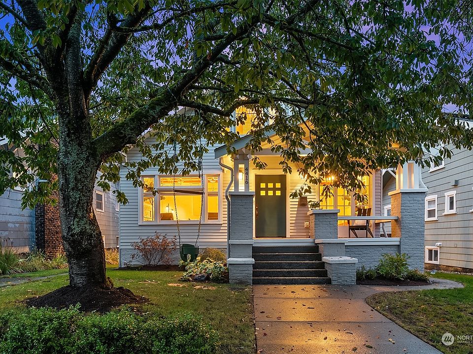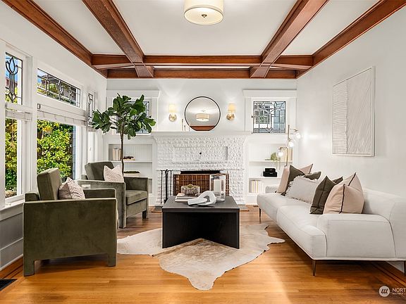 Discover a meticulously renovated 1914 Craftsman bungalow blending historic charm with modern luxuries in Wallingford. In collaboration with Crescent Builds, the renovation preserves original features like leaded glass windows, inlaid hardwood floors, tapered box beam ceilings and a mantled fireplace flanked by built-in bookcases. While full of charm, you will appreciate all the modern updates that include a spacious chef’s kitchen that opens to the back deck, updated bathrooms, and big system updates including: A/C, windows, plumbing, electrical, and more. Located on a premier street, you can enjoy proximity to cafes, restaurants, and theaters as well as easy access to I-5, Hwy 99, and the UD light rail station.