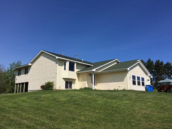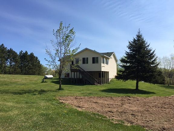 Talk about peace and quite!!! Here is a 4 BR 2 Bath home with much storage, open plan and 4 season knotty pine sunroom overlooking nature at its best. Basement needs trim around windows, doors, to make this home complete. Five plus acres, cul-du-sac, and a pond! Front windows used to be garage, then family room, and now garage again. One door but space for more. Storage shed, chicken coop. Hunt right here! Corn stove for supplemental heat in basement and sunroom. Show and sell!, Directions 35W North to Harris Exit, go west to Falcon, turn right (north) to 440th, left to Fairview right, home on left.