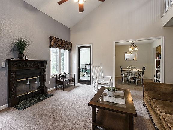 Lake Front end unit. 2 Bedroom, 2 baths. Large eat-in kitchen with pantry and lots of cabinets. Updated stainless steel appliances. Formal dining room. Spacious living room with vaulted ceiling, loft, and fireplace. Huge master suite with vaulted ceiling and walk-in closet. Master bath has walk-in shower. Guest room has walk-in closet and access to full bath. Loft with 2 closets can be used as office, craftroom, or extra guest sleeping. Sunroom with tile floors overlooks lake. Paved patio. Ceiling fans in Master Bedroom, Living Room, Loft, and Sunroom. Updated faucets and lighting. Ample guest parking. Clubhouse with numerous scheduled community activities. Clubhouse available for private event rental by homeowners. Neighboring schools: Pearce Elementary; Kernodle Middle; Northwest High.