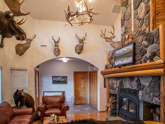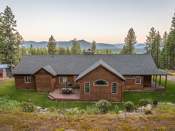 Welcome Home to serenity and peace! This 5 bed /3.5 bath, 3210 sqft. home is on 10 beautiful well wooded acres. You are surrounded with Idaho Mountain views, all on a county-maintained road. You will fall in love with the grand stone fireplace in the formal family room. Large entertaining kitchen that is open into the living room, dining and courtyard deck. Granite counters w/ breakfast bar, hickory cabinets, double wall oven, wrap around decks to enjoy those summer nights. Master bedroom with an oh so beautiful attached bath and walk in closet. Love the view from your jet tub. All bedrooms are spacious with large closets, you even have a 2nd master suit w/ a full bath. Office nook. Large laundry room. Plenty of windows that invite the natural light. 2 car attached garage. 2 sheds.