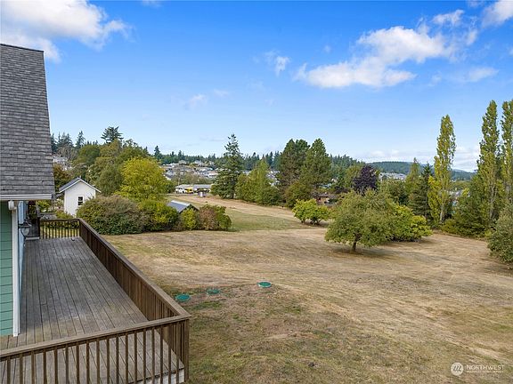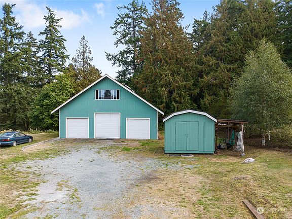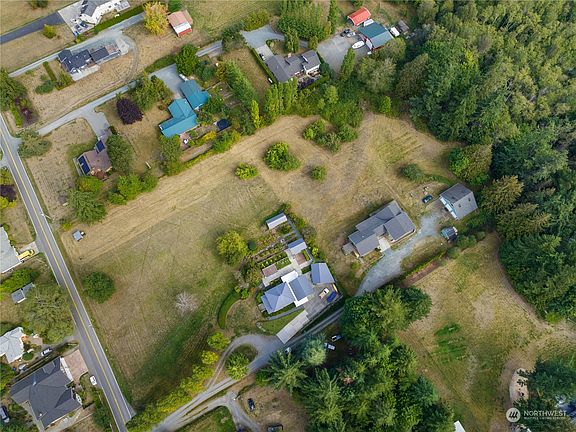 Beautiful Northwest contemporary home on 2.8 acres just inside city limits but walking distance to nearby Heart Lake trails. Great home features dramatic vaulted ceilings & windows to take in territorial views & sunsets. Lovely kitchen open to living area, large ironwood deck for entertaining. Large primary suite w/ ensuite tile bathroom. Daylight basement family room with bath. Main level MIL suite waiting for your final touches. Unit has separate entrance with kitchen area, laundry, living, 2 bdrms, 1 bath & your own private deck. Perfect for relative or guests! Great shop has floor space for 4-5 cars or RV/boats plus huge loft perfect for storage or office space or potential ADU. City water & sewer available-Potential for addt'l lots.