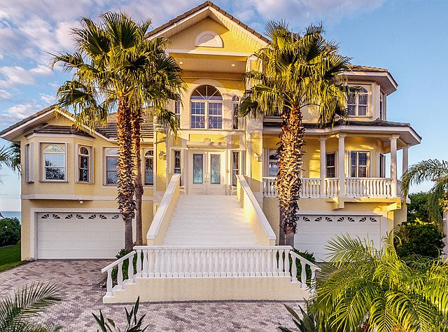 Whether you need the perfect space for your growing family or the ideal place to settle down, this gorgeous 4bedroom/4bath Gulf-front home is for you. Immediately, the circular drive and palm tree flanked stair entryway endears you to this quintessential Florida dream house. Once inside, you are treated to panoramic views of the Gulf of Mexico from the elegantly tiled great room with 22 ft ceilings and spacious breakfast nook. Joining these rooms in the open floor plan is a fully functional chef's kitchen complete with Sub Zero refrigerator, Viking 6-burner stove, wine cooler, granite countertops, and access to your private dining area. Head up the floating staircase or take the 3-floor elevator to find the master suite with sweeping views of the Gulf, private balcony, and large master bath with hydro massage tub and walk-in shower. One of the additional 3 bedrooms is finished as a luxurious office/library/study space, and comes with a Murphy bed to accommodate guests or children. All windows and doors are fitted with hurricane-proof shutters and the 2nd floor has poured concrete floor and pilings. The first floor includes a 5 car garage with plenty of storage and bonus space. In the Florida sunshine, you'll love your heated saltwater pool and spa, beautiful dock, and boat slip with 10,000 lb boat lift. And because you live in securely-gated Harborpointe, you also have access to the community amenities including tennis courts, putting green, bocce ball court, and clubhouse.