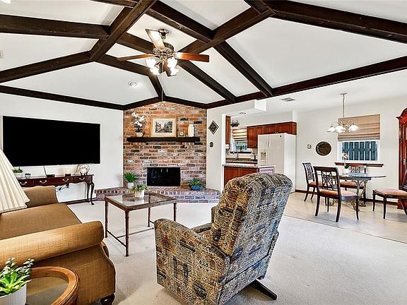 Located in the highly desirable Elmwood Park subdivision, this beautifully maintained 3-bedroom, 2-bathroom home is full of charm and curb appeal. Lush landscaping welcomes you as you approach, and inside, you'll find a bright living room with vaulted ceilings and a cozy wood-burning fireplace. The kitchen boasts upscale cabinetry, granite countertops, and stainless-steel appliances including a double oven that is less than a month old. The home also features a brand-new AC system (both in the attic and Trane compressor), and the roof is less than 5 years old. Two of the bedrooms offer double closets, providing ample storage. This home has never been smoked in and has never had any pets. Step outside to a spacious covered patio and fully fenced backyard—perfect for entertaining or relaxing. Convenient attached garage. With great schools nearby and located in an X flood zone with an assumable flood policy of just $765/year, this home is a true gem!