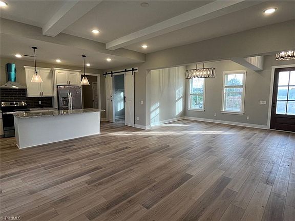 Check out this NEW CONSTRUCTION home only 3.4 miles from the Mega Site in Liberty, NC! Just outside city limits in Climax, NC you can enjoy the peaceful small town life, and the convenience of being 20 minutes from Downtown Greensboro. This 3 bedroom, 2 bath home is full of custom features including a solid wood front door, luxury vinyl plank, barn door pantry, tray ceilings in the primary suite, mudroom, and 9 or 10 ft ceilings throughout. The kitchen is a chef's delight featuring white shaker style cabinetry, colonial white granite countertops, and a full GE appliance package. Future homeowners will even enjoy a farm view from the covered back porch. See attachments for floor plans and a mood board highlighting some interior fixtures.