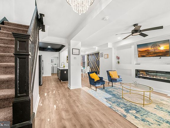 ¨PLEASE CALL THE LISTING AGENT: (240) 446-0553¨An entertainer’s delight in the coveted Green Spring subdivision! Modern, sun-filled, and ready for a new adventure; this spacious four-bedroom, three-bath home offers connectivity to the surrounding Baltimore community. Beautiful open floor plan greets you at the front door, flowing throughout the house as you walk past the inviting family room with an electric fireplace towards the kitchen and open dining area. A custom-designed black and gold accent wall draws you in as you gather guests around the dining room table to feast on delicious meals prepared in the adjoining kitchen utilizing the stainless appliances, black cabinetry with gold pulls, and clean white countertops. After a shared meal, head outdoors to one of the two decks ready for spring and summer fun, or head down to the finished walkout basement with a wine fridge and an additional room perfect for a home office. Upstairs you will be delighted to find a truly luxurious bathroom with a deep soaking tub inside the tiled shower that will make you feel like you live at a spa! Additional amenities include off-street driveway parking for two cars, stunning light fixtures, storage options, and easy access to nearby parks, schools, downtown Baltimore, public transportation, and shopping. A life beyond your wildest dreams awaits on Pall Mall Rd! **This property qualifies for Baltimore City's $10K vacant-to-value Brand New Carpet in the Basement**