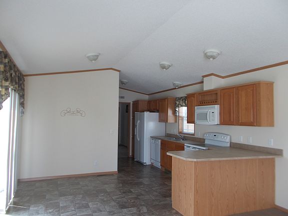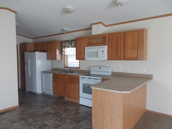 Available Immediately! Very nice 2009 16 x 80 3 Bed 2 Bath in Century Park! Large open floor plan in kitchen/dining & livingroom! Kitchen is fully equipped with nice cabinetry & flooring, plus patio door. Separate laundry room off kitchen. Spacious livingroom. Master suite features walk in closet & private glamour bath. 2 additional bedrooms are good sized & share main bath. Vaulted ceilings and textured walls thru out. Room for a large deck & storage shed. This home was moved in and has new skirting & heat tape. Excellent condition. Across the street from the Park & close to new shopping center & schools! MOVE IN READY! Call Alice at Liechty Homes in Bismarck for more information on this home! Phone:701-223-0555 $47,900.00