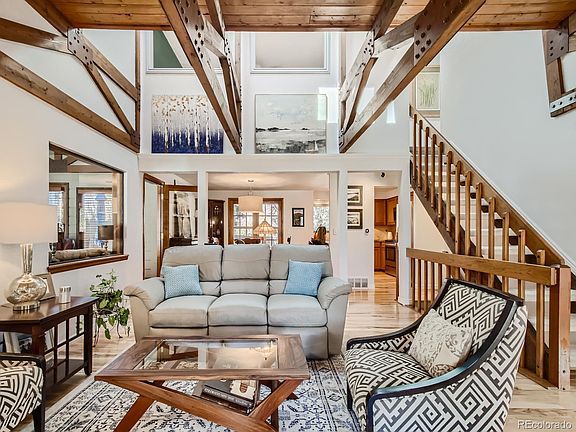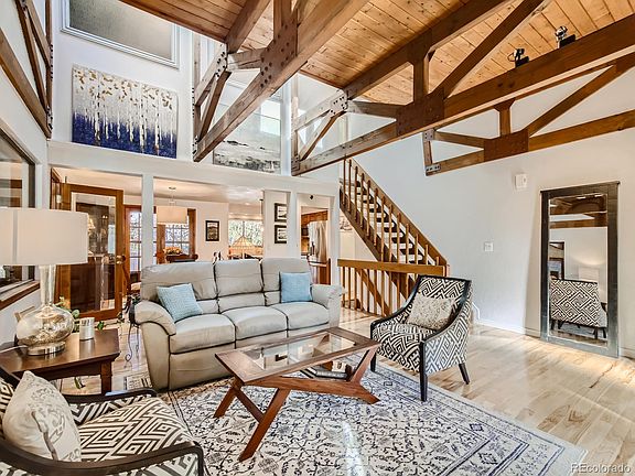 Imagine the smiles on the faces of your friends and family as they come through your front door into the inviting warmth of the sunlit main living area. Light spilling from the skylights and large second level windows highlight the beautiful textures from the hardwood hickory floors to high ceiling wooded beams showcasing the craftsman trim work and layered stone surrounding the fireplace. Just ahead they can see the lush deck and patio, a great place for morning coffee and conversation. Off to their left they catch a glimpse of the unique spacious sunroom…the perfect spot to curl up with a good book or to watch some Sunday football. The convenient, newly updated kitchen features sparkling stainless appliances and handsome granite counters where you can offer your guests a little refreshment or prepare a five-course meal for the whole family. Enjoy extra storage in the custom pantry across from the kitchen. Whether preparing a meal or enjoying one in the adjacent dining room, large windows offer views of the lush private back yard. If your guests are staying the main level bedroom just down the hall is the perfect landing spot. For more guests, or family, the second floor offers a large bedroom with ensuite bath and oversize closet as well as a spacious primary retreat with a private bath and balcony. Check out the Sellers Property Disclosure for the updates and replacements too numerous to mention here which will give new owners peace of mind. Finally, the unfinished basement allows you to create an environment which meets your needs, perhaps a playroom, shop, workout area, or storage. Your neighborhood, the Cherry Creek Racket Club community, is strategically located close to the Denver Tech Center and light rail or bus (at Nine Mile is 5-10 minute drive) to Downtown Denver. Easy access to amenities, services and shopping. And you’re within walking distance of the Cherry Creek Reservoir and Cherry Creek State Park.