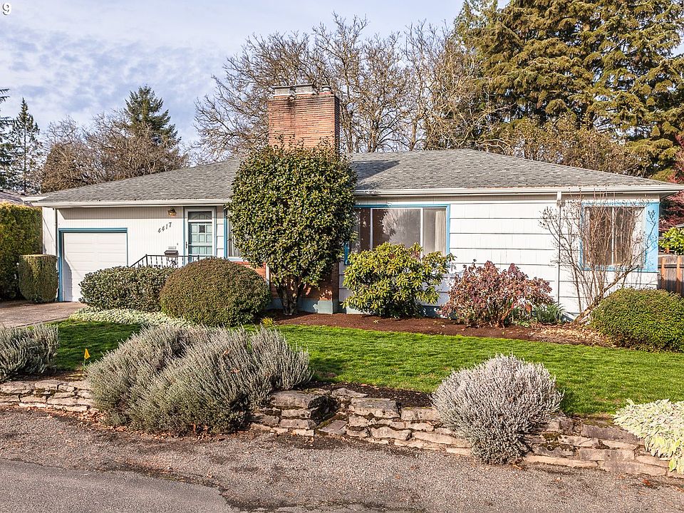 Oh the possibilities! This 3 bedroom ranch house has wood floors waiting to be finished and one level living with a lovely large backyard. Entrance to the lower level is thru the garage creating a separate space for future opportunities. Now the lower level is a cool party room with second fireplace, bar, pool table, laundry area and utility sink. New gas furnace and tons of potential. [Home Energy Score = 3. HES Report at https://rpt.greenbuildingregistry.com/hes/OR10019573]