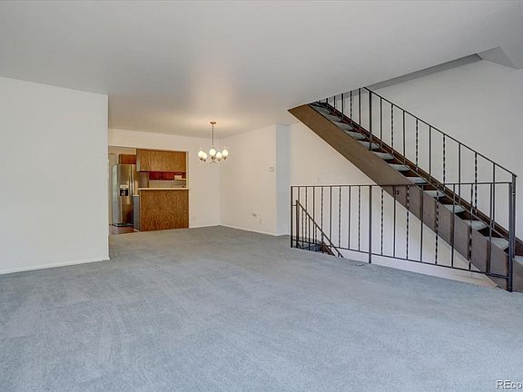 Come and see this great townhome nestled in Columbine Lakes. On the main floor you can enjoy the large living room that flows into the dining room. 1/2 bath. The Kitchen has an eat in space and access to the large fenced private patio/courtyard for your enjoyment. The upstairs features a large primary bed room with a private full bath, a wall closet as well as a walk in closet. There is also a 3/4 bath in the hall and a large 2nd bed room. For extra living area the full finished basement has a fireplace, egress window and a vet bar. Full laundry room. A/C. All appliances included. 2 Car Detached carport. There are 3 ponds. Trails. Club house with indoor Pool, Hot tub, Fitness, showers, party room and much more. You can walk to shopping and dining. Welcome home today.
