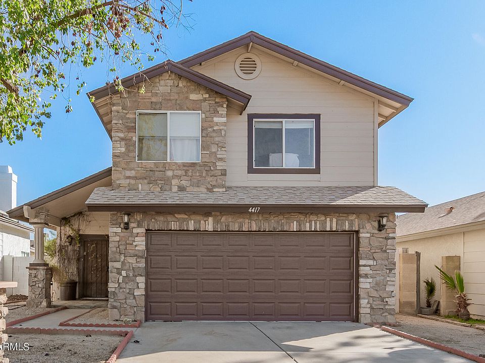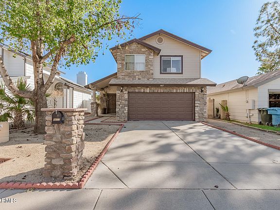 Seize the opportunity to own this lovely two-story residence with no HOA! This beauty features striking stone accents, a 2-car garage, a mature shade tree, and a cozy front porch. The welcoming interior highlights soaring vaulted ceilings, tile/wood-style flooring, and a generously sized living room with sliding glass doors that merge indoor and outdoor living. Continue onto the eat-in kitchen, providing stainless steel appliances, a handy pantry, recessed lighting, wood cabinetry, and a bay window with backyard access. Venture upstairs to discover carpeted bedrooms, including the primary retreat with a full bathroom experience. Out the back, you have an open patio and lots of space for fun gatherings. Incredible mountain views! What's not to like? This gem is the one!