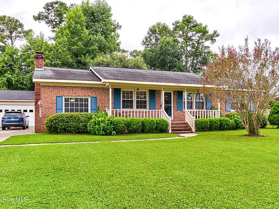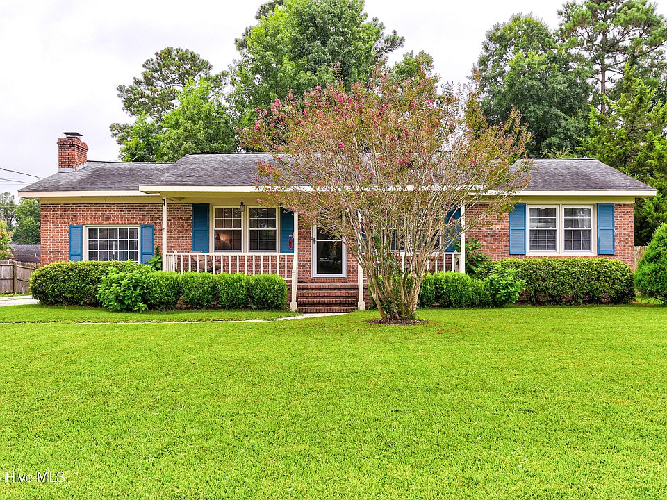 Welcome home to this cozy and well-maintained property in an excellent location—just minutes from I-40 for easy travel and located in the county, so no city taxes, yet within a 20-minute drive to Wrightsville Beach, dining, shopping, coffee shops, and more!!! NO HOA! Enjoy peaceful living on a spacious lot with a fenced backyard, detached two-car garage, and covered front and back porches perfect for relaxing and taking in our beautiful coastal weather. Inside, the home features both a living room and den, offering flexible living space. The combination dining area flows into a charming kitchen with white cabinetry, matching countertops, and sliding glass doors that open to the covered back deck. A brick wood-burning fireplace adds warmth and character to the living area. The primary bedroom includes a walk-in closet, step-in shower, and vanity. Two additional bedrooms share a guest bath with a shower/tub combo and a vanity with ample countertop space. Additional highlights include a large laundry room and no current HOA restrictions—offering both comfort and convenience in a desirable setting. Schedule your showing today!