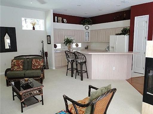 CABANA STYLE HOME: REDUCED & PRICED TO SELL: 3/3/3 PLUS Den w/2,199 sq. ft. situated on manicured 1/2 Acre, located in gated community. Separate suites: Master w/sliders leading to courtyard/pool area w/luxurious bath featuring WI Shower & Garden Tub, Guest Bedroom w/its own bathroom, open kitchen that overlooks family room & 3 sided travertine fireplace. Dining w/ new laminate flooring as well as lg. den w/ door to pvt. rear screened porch. Separate 3rd bedroom has pvt. bath perfect for media room, in-law suite, or home office. Free form heated pool & hot tub. Open, Lg. Courtyard offers ultimate privacy. You won't be disappointed.