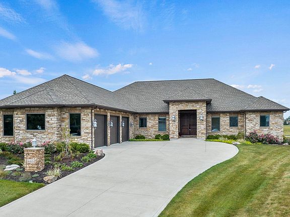 Welcome to the epitome of luxury living at this exquisite Andre Mourad modern ranch on a full daylight basement, a stunning architectural masterpiece that redefines the concept of opulent living. This lavish estate boasts 4 bedrooms on the main, thoughtfully designed with a split bedroom plan, and an additional 2 bedrooms on the lower level, offering a total of four and a half bathrooms and a 3 car garage. Upon entering the first bedroom, you'll be greeted by a capacious walk-in closet complete with closet tamers, and an en suite bathroom with pristine porcelain flooring, dual vanities, an expansive walk-in shower with dual rain heads, and an exquisite pebble stone floor. The second bedroom on the upper level also boasts an en suite bathroom, providing an ideal retreat for guests or family members. The heart of this residence is the impeccably appointed chef's kitchen showcasing custom cabinets, a separate Frigidaire Professional freezer and refrigerator, a built-in hood, an industrial gas cooktop, a microwave drawer, and a generously-sized island topped with stunning quartz. The modern stainless farm sink adds a touch of elegance, while the enormous walk-in pantry ensures you have everything you need at your fingertips. Throught the home, solid bamboo flooring, complemented by soaring 12-foot ceilings lend an air of grandeur to every room. The powder room is a work of art, featuring a striking stone wall and a custom vanity with a granite top. As you step through the impressive 8-foot double hickory entrance doors, your gaze will be drawn to the large picture windows that frame breathtaking views of the surrounding landscape. A wide, solid wood staircase with a glass railing leads to the basement, where you'll discover a spacious recreation room. This lower level retreat boasts a modern fireplace crowned with a reclaimed wood beam mantel and is plumbed for a wet bar. In addition to the recreation room, the basement offers two extra bedrooms, and a substantial workout/office space, catering to all your lifestyle needs. One of the basement bedrooms even features a charming built-in vanity/desk. This exceptional residence comes equipped with an instant water heater for on-demand hot water, ensuring your comfort and convenience. The 3 seasons room and Trex deck provide idyllic spots for outdoor relaxation, overlooking the meticulously landscaped grounds and a private half basketball court. Close to trails, schools, shopping, Parkview Hospital and more.