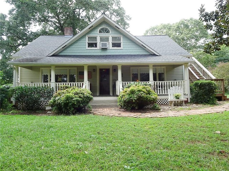 Well-maintained Craftsman style home on 1+ acre. Private 1200', tree-lined driveway. Mature hardwood trees shade the porch and rear deck. Open concept family room with FP and eat-in kitchen. Oversized owner's suite with sitting area and spacious bath. Owner's suite also features a double-sided masonry FP w/ a wood burning side and gas logs on the other side. A secondary BR and full bath on main level. Separate guest suite/apartment with kitchenette upstairs and a separate exterior staircase for a private entrance. Convenient to shopping: Publix, WalMart, and Walgreens.