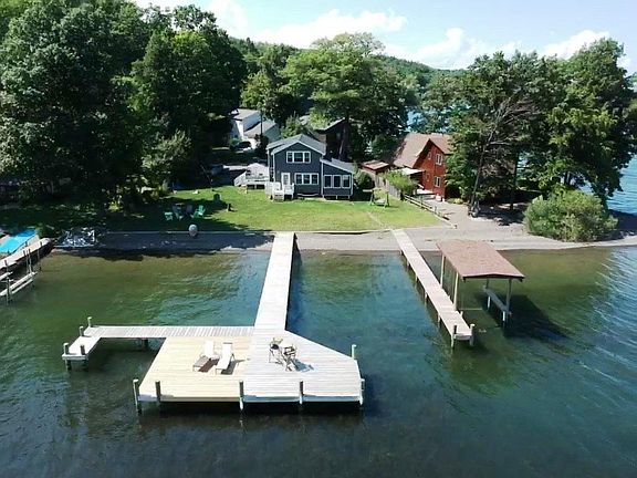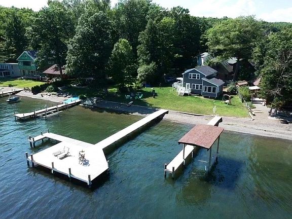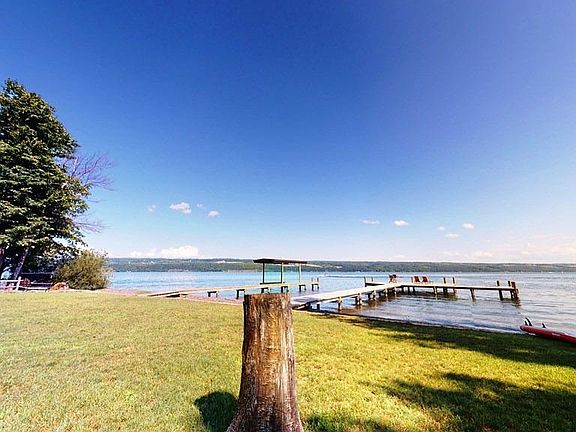 This Seneca Lake home built in 2015, Cottage on 119' of Level Frontage, is a rare find today! Features include large docks and electric boat lift; two open decks and enclosed screened-in porch. The upper floor has 704 sq ' with a cathedral ceiling, currently is one large room, which could be easily divided into bedrooms. Beautiful views! Enjoy NYS Wineries and Restaurants from this property too! Survey and Elevation certificates are available, as the home is built above the flood zone. Property sold, turnkey. Westside Seneca Lake, approximately 12 North of Watkins Glen, NY.