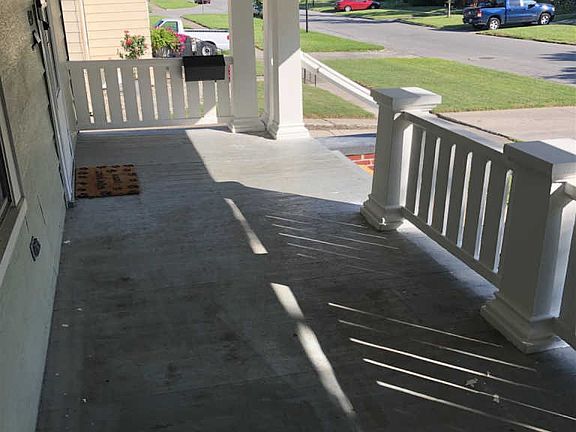 Come enjoy sitting on this awesome covered porch in this Family Friendly Neighborhood, right around the corner from the playground/park area. This home has had some updates to the bathrooms, kitchen. It has a large living room and dining room with loads of windows and large trim detail throughout the home, it also has 3 good sized bedrooms with a very large full bath upstairs and a 1/2 bath off the dining room, unbelievable amount of windows. The basement is dry and could be made into another living or play area. The back yard is a nice size and completely Privacy Fenced. Don't miss the opportunity to live in this quiet neighborhood that is located close to the downtown area. . Don't miss this opportunity to own this great, affordable home. This home is being sold AS-IS, at a great price because the owners are moving out of state for their jobs.