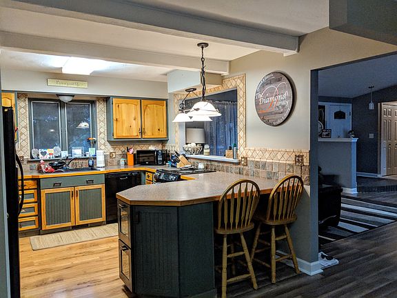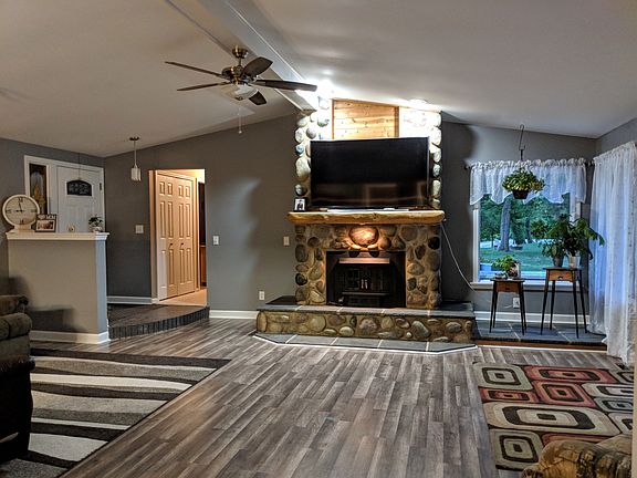 John Denver would've loved to sing on this one! Rustic, woodsey, cabin feel & OH SO Peaceful! Porch railings are accented w/ willow limbs, stamped concrete, perennials & of course a porch swing! 1.5 story Garage/outbuilding has rustic Old-West character & a 2nd outbuilding has its own drive & large parking lot to store semis, trailers, boats or any Big Kid toys! 10 acre parcel w/ pond, beach, mature trees & unending tranquility! Inside the Cabin-in-the-woods feel continues w/ a massive vaulted livingroom & floor to ceiling Fieldstone fireplace w/ woodburning insert. Kitchen has snack bar, pass-thru to livingroom, custom tilework & appliance. Dining area windows give the feel of having a picnic at every meal! Large Master bed w/ accent lighting in the crown molding, private master bath w/ walk-in shower. Main bath w/rustic sauna/spa feel. Entire home & property has warm, comfortable, retreat-like essence that folks would pay big bucks to visit, but you can have it as your own!