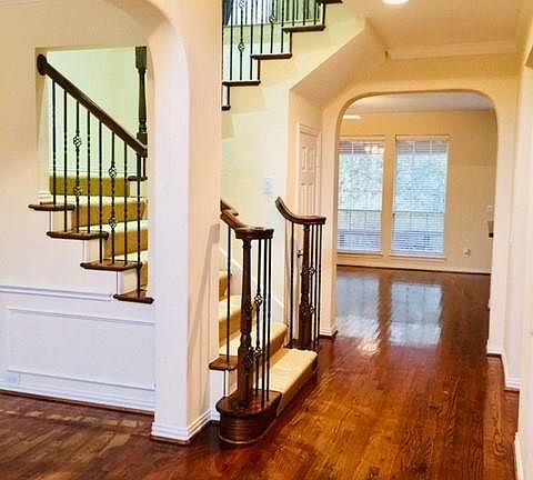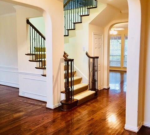 You must see this absolutely stunning 4 bedroom, 3.2 bath, 2 dinning rooms, 3 living areas and 3 car garage home in beautiful Ridgecove! Great curb appeal. Open and inviting spectacular floorplan with Plantation shutters, island in kitchen, Granite, beautiful hardwood floors, crown molding and huge wood deck which makes this home great for entertaining. Master is downstairs with 11x10 sitting area, which overlooks screened in area to treed greenbelt leading to Lake Ray Hubbard! Buyer to verify all information.