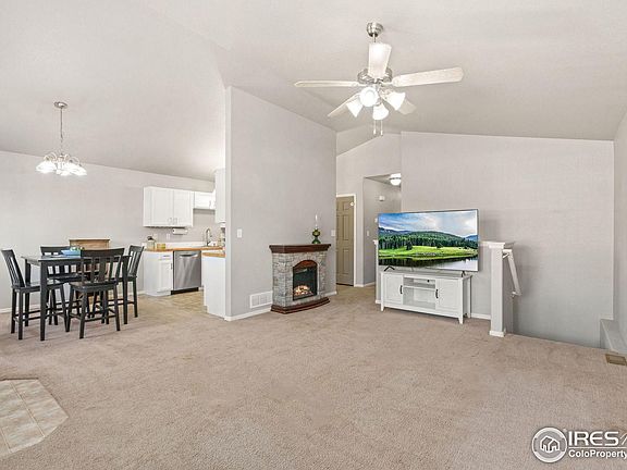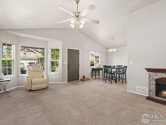 New main level flooring & fresh paint!! Corner lot 4 bedroom, 2 bath home in the Gateway Estates neighborhood. Main level primary bedroom and laundry. Basement framed with 5th conforming bedroom, electric completed - ready to finish! Open floorplan with a peaked a-frame ceiling. Kitchen has a full suite of stainless steel appliances, a pantry and off-kitchen dining room. Main level bath with 2 vanities and pocket entrance to the primary bedroom. Two additional bedrooms upstairs and one finished downstairs. Ample downstairs storage with built-in shelving, hook-ups for downstairs laundry. Established landscaping with a sprinkler system, large backyard patio, fenced garden area and raised flowerbed. Located central to the new UCHealth hospital, amenities, shopping and highway for easy travel.