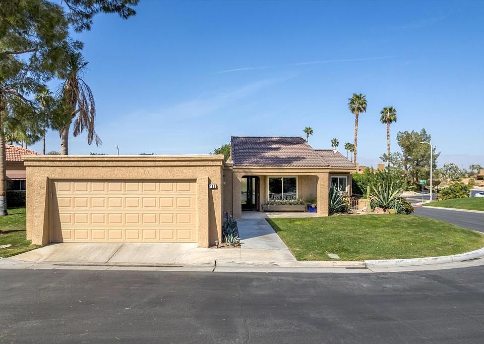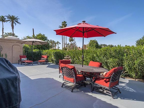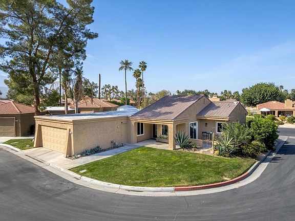 Welcome to the hidden gem community of Hidden Palms! Great location centrally located in the Coachella Valley close to El Paseo known for exceptional restaurants and upscale shops. This 3 bedroom, 2 bath detached home has been extensively remodeled throughout and is turnkey furnished! Entering this meticulous home, you immediately are aware of the open concept floor plan with a stunning leather finished granite waterfall island and beautiful quartz countertops. This gourmet kitchen has a WOLF stove, stainless steel appliances, and custom soft close cabinets. You will notice the attention to detail with upgraded 4'' baseboards and unique frosted and barn doors throughout the home. Both bathrooms have been tastefully remodeled with a modern vibe. The master bedroom resembles a spa-like atmosphere with a free-standing tub in the oversized walk in shower, modern sinks and fixtures, and a large walk-in closet. Within this quaint community, there are pickleball courts, tennis courts and park-like paths that meander past the 3 lakes and 4 community pools/spas. This home is MUST-See and will not last!