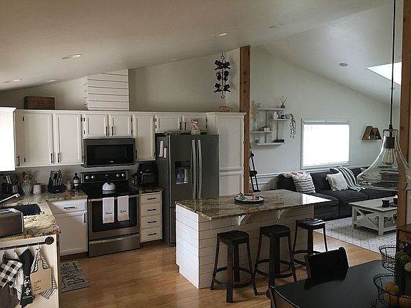 Charming craftsman style rambler in the peaceful Kackman Creek neighborhood! Gracious living with vaulted ceilings & loads of natural light. Great kitchen w/slab granite, nice storage, large breakfast bar & all appliances. Master w/walk-in, full bath & slider leading out to private deck. 3 add'l bedrooms & full bath plus utility completes the package. Shy 1/2 acre of easy care landscape with fire pit, gated garden area w/raised beds all located on a dead end street across from greenbelt area.
