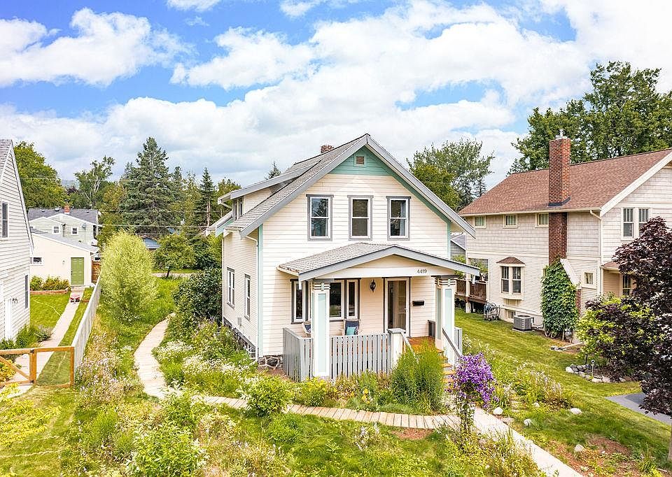 Tucked into the heart of Lakeside, this sweet and sunny home is full of charm -starting with the dreamy native gardens that wrap around the front and back yards. A wooden walking path lets you wander through the greenery without stepping on a single petal. Out front, the porch is just waiting for your morning coffee or evening glass of something good. Inside, the circular floor plan flows with warm hardwood floors and sunshine pouring in from big, happy windows. The living room is spacious and cozy, with easy access to the dining room, perfect for dinner parties, board games, or building epic pillow forts. The kitchen has had a glow-up with new appliances, countertops, flooring, and fixtures, plus tons of cabinet space for your favorite mugs and snacks. Upstairs you'll find three bright, comfy bedrooms with hardwood floors and roomy closets. The bathroom feels fresh and modern with updates to the vanity, toilet, and a shiny reglazed tub. You'll love the sunshine that pours through the adorable skylight! Downstairs, the basement offers loads of storage, a brand-new washer and dryer, and a bonus room ready to become whatever your heart (or hobby) desires. The backyard is a total gem with a newly expanded porch, new fencing, improved grading for rain-friendly runoff, and updated walkways. A one car "garage" allows for additional storage for all your outdoor adventures or hobbies! Big upgrades like a new sewer line, flat roof above the kitchen, and front porch flooring mean less stress and more play. Mechanicals? All set - with a new furnace (2021), A/C (2022), and a Nest home system that stays. The list of updates is extensive! All of this in a friendly neighborhood close to parks, schools, local eats, and little shops you’ll love!