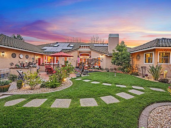 REDUCED! Act now.Step into a realm of exquisite living where craftsmanship & custom details converge to create a residence beyond compare. 1 story. With 5 spacious bedrooms & 3,571 sq. ft. of living space, this home is a showcase of meticulous design & quality craftsmanship, w/ every feature added by the current owner elevating it to unparalleled heights. As you enter through double doors into the grand foyer w/ marble inlayed floors, the ambiance of sophistication envelops you. The extra-large Master Suite, features a main bath that rivals a spa, complete w/ double sinks, an extra-lg tiled shower, & a separate jacuzzi tub. The walk in closet has a convenient door to an outside patio just steps away to enjoy an oasis of tranquility w/ a hot tub nestled under a Gazebo.The heart of this home, the chef's dream kitchen, boasts hand-hammered copper sinks, an extra prep sink, & bar area with built-in wine refrigerator. The raised ceiling, skylight, custom stained glass in the pantry infuse the space w/a Tuscany feel, creating an atmosphere of warmth & elegance.Private fenced flat back yard, professionally landscaped to perfection w/ citrus trees.Dog run area, raised vegetable gardens. 15,876 sq ft. lot there’s even room for a pool. Every detail tells a story of opulence & refinement.