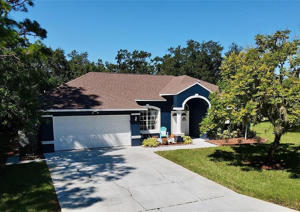 PRICE REUCED FOR A QUICK SALE!! A very rare opportunity to purchase in the very highly desirable subdivision of Riverside Village Estates located just off Little Rd and a mile north of SR54. This 4 bed/2 bath/2 car garage pool home is situated on a very private home-site that is just over a third of an acre and has almost 2,000 sq ft living space. The home has a double door entrance that leads into the front living/dining room with beautiful view of and access to the pool area. The primary bedroom is just off the right of the front door. As you walk through the interior of the home you will come to the kitchen and family rooms. Just off the kitchen to the left is the laundry room complete with a closet for extra storage. Off to the right of the kitchen is the breakfast nook that provides access to the pool. At the back of the family room are 3 bedrooms and the second bath that again provides access to the pool area. The kitchen has granite countertops and a snack bar for eating or entertaining while cooking. The home has 10 ft. ceilings and has lots of windows/sliders giving a bright and airy feeling to the home. The flooring consists of laminate in the living, dining and family rooms and there is ceramic tile in the in all the right places. The primary bath has walk-in shower and garden tub for soaking and a separate vanity area. The lanai is spacious with a covered area for seating and the pool at the deep end is 8 ft deep with newer screens. The deep lot allows for a longer driveway that can easily accommodate 4 vehicles and there is an irrigation system that is on a well which is a huge savings on your water bill. The seller just put in a new garbage disposal, pool pump and garage door opener that has a downloadable app to use from you cell. The exterior was painted within the last year and the roof and water heater were replaced in 2015. Very close to Mitchell Fields, Starkey Park, and approximately 30 minutes to Tampa International Airport using the Suncoast Parkway. Loads of shopping and restaurants to choose from, not to mention that the historic sponge docks of Tarpon Springs and Fred Howard Park are also 25-30 minutes away.
