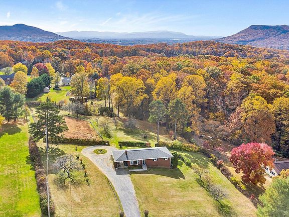 Gardener's Dream! Maintenance free Brick Ranch on 3.12 acres in Botetourt County with 3 BR 1.5 BA. Beautiful hardwood floors, 2 brick fireplaces (one with wood burning stove). Built-in bookcases in Living room.4th Bedroom and/or In-law suite potential with a separate entry on lower level. Great outdoor perks! Gorgeous mountain views in all seasons. There is a small creek on the back of the 3 acre property. Tend your own quarter acre of fenced garden space plus chicken coop both with water & electric hookups. A greenhouse, barn, and fruit trees complete this beautiful property. Plenty of parking on the circular driveway & carport. Newer roof, replacement windows, doors & high efficiency Trane HVAC.