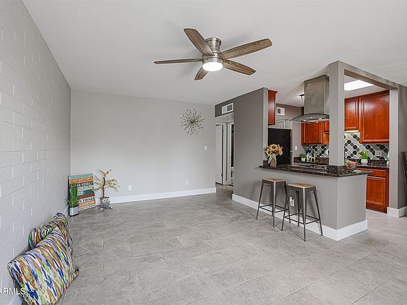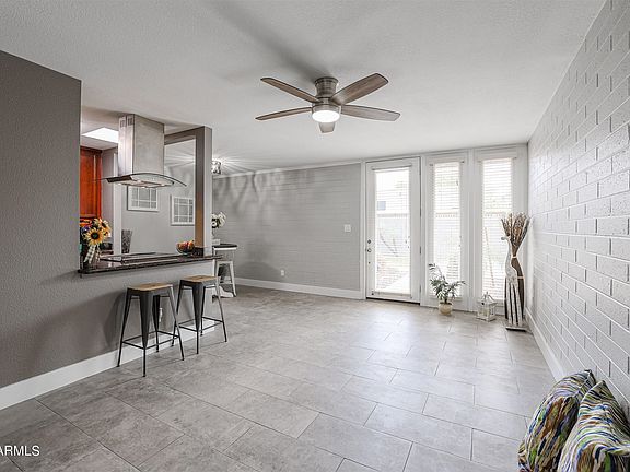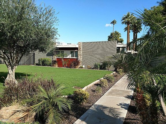 Remodeled single level condo located just blocks from Biltmore shopping. Complex has no units above or below the units & they are made w/block construction. Modern inside, upgraded kitchen backsplash, slab granite counters, new stainless stove & dishwasher, new tile throughout, new bathroom, custom tile shower, new paint, W/D inside condo & a private back patio. Patio is tiled & has a section of synthetic grass. The condo comes w/separate storage locker & one assigned covered parking space. The complex is gated, w/lush grounds, pool, outdoor shower, outdoor BBQ & picnic area. You are less than 10 minutes to Old Town Scottsdale, 10-15 minutes to downtown Phoenix, & close to all major freeways, shopping & minutes to hike Camelback and/or Piestewa Peak Mountains. Good credit required.