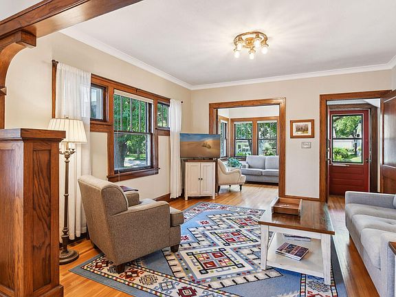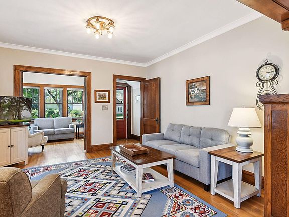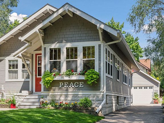 This classic Bungalow style home is a wonderful blend of character, charm, & modern updates! Your first steps into the home are warm & inviting. The large living room with southern facing windows opens to the dining room highlighted by gorgeous built-ins. The modern kitchen has beautiful quartz counters, updated appliances, new flooring, & lots of cabinets! Two main floor bedrooms conveniently located by the full-bath. the sunroom may be your favorite space: surrounded by windows; use it as a den, home office, workout room, or just relax with a cup of coffee. Partially finished basement is a great balance of storage & usable living areas; office, workout room, playroom, & more! The backyard is amazing. Entertain family & friends on the cozy patio. Enjoy a bonfire while tucked under trees. The 2015 built 2-car garage is large w/bonus storage above! The home has been well maintained over the years & is move-in ready. Walk & bike to neighborhood shops, schools, restaurants, lakes & parks! There's lots of wonderful features here. Come see all this home offers!