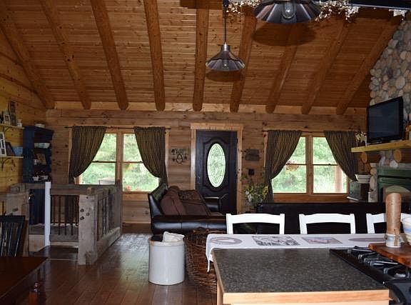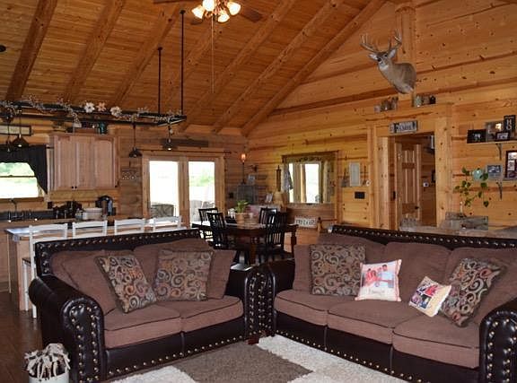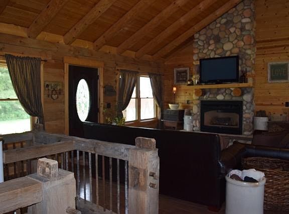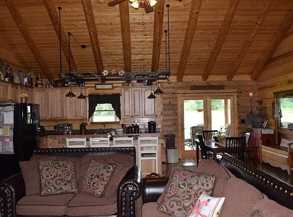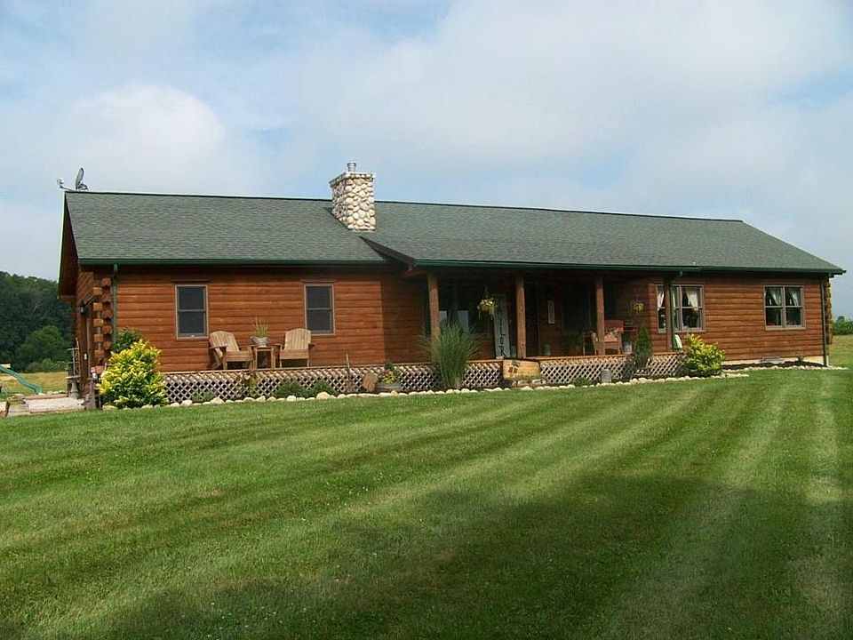 GREAT VALUE! Solid, well-maintained, 2006 Log home w/2 car garage on 12.71 acres South of Mt Vernon for quick access to Mt Vernon, Newark & Columbus. Amenities and updates include; Open concept, hickory cabinets, vaulted ceilings with exposed log beams, gas cobble stone FP & hand scraped floors. Main level features 3 bedrooms, 2 baths with 1 additional bedroom in FINISHED LL. LL also features rustic bar in family/media room, playroom, storage, utility room and two stairways. Outside wood burner heats home & water w/ propane backup. Whole house generator prevents interruption of service within 30 seconds. CSI water treatment system. Huge covered front porch & rear covered deck w/ patio. Property features 3 barns: 1) is 48x60, 2) 48x30 with feed room, water & electric