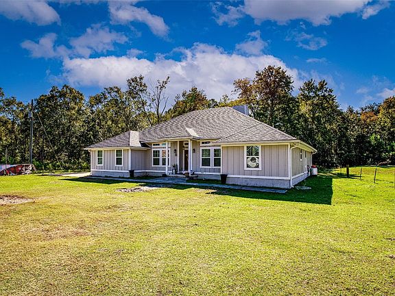 Nestled on nearly 6 acres of serene land, this beautiful 4-bedroom, 2-bath country home offers the perfect blend of comfort and nature. Zoned for horses, the property is ideal for animal lovers, with plenty of room to roam. The home features a spacious layout with a cozy living area, perfect for family gatherings. The Kitchen offers granite counter tops, pendant lighting and custom built shelving in the pantry. The master suite includes a luxurious garden tub and a separate walk-in shower, creating a spa-like retreat. From the Main Gathering Room, relax with a book or enjoy a movie with the cozy fireplace or Step outside onto the covered lanai, where you can enjoy the privacy of the tree lined back yard view. The expansive property also includes a pond with a dock for fishing, adding a tranquil, natural touch to the environment. Whether you're looking for a place to raise horses, garden, or simply unwind, this country home provides endless possibilitie