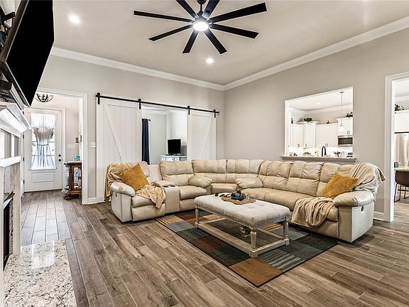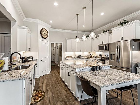 This gorgeous waterfront home is less than one year young with upgrades galore! Features 4bed/3baths open, triple split floor plan with a flex space and mudroom. Fenced backyard with water view and screened patio create this dreamy backyard! Extended driveway, landscape improvements and gutters installed. Additional upgrades include gas fireplace, additional gas line for outdoor cooking, under cabinet lighting, upgraded lighting, granite, flooring and appliance package. 24KW Generac generator!! See amenities list.