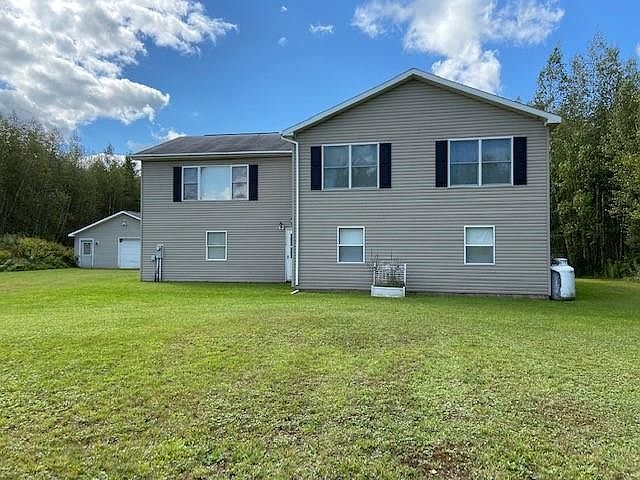 BUILT IN 2000 on 10 acres of land!! This home sits way back from the road on a private drive. It has an in-law apartment on the lower level with kitchen, living room, bedroom, laundry room and bathroom. The apartment has a propane monitor heater. The upstairs living area has a large living room, nice Oak kitchen with appliances, three bedrooms and two full bathrooms. The primary bedroom has double doors to the primary bathroom with corner tub, separate shower and vanity. There is also wall to wall closets. There are two separate laundry areas for the apartment and house. There is an attached garage and a separate garage along with a back deck. This could easily be one large 4 bedroom, 3 bath home with family room. If you are looking for privacy, Brasher School, and land then you just found it. Call for your tour today!