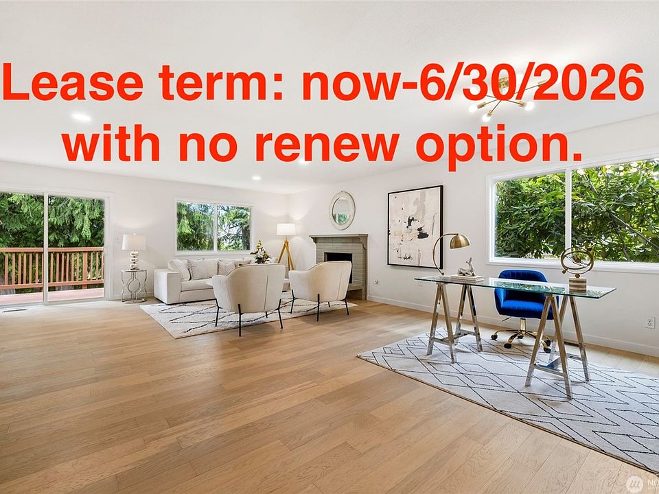 Lease term: now-6/30/2026 with no renew option. Perfectly positioned in Bellevue's sought-after Wilburton neighborhood, this charming 3-bedroom, 2-bath rambler offers both comfort & lifestylejust a short walk to International School & mins to Spring District & DT Bellevue. Every window frames lush greenery & serene views. The spacious living room w/a cozy gas fireplace opens to a bright kitchen featuring oak cabinetry, brand-new appliances, & granite counters. Updates include engineered hardwood floors throughout, newer windows, fresh interior & exterior paint, new water heater, & furnace. The fully fenced backyard w/a deck is ideal for summer BBQ, while a 2-car garage completes the package. Just steps from Kelsey Creek Park trails, this home is perfect for anyone who love the outdoors.